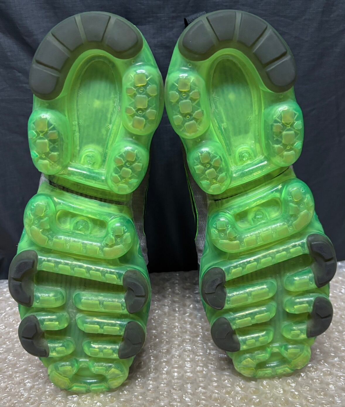 ポイント:半透明のアッパーと鮮やかなネオンカラーのエアユニットが特徴的なモデルです。ソール全体がエアクッションで構成されているため警戒で反発力のある履き心地を実現します。